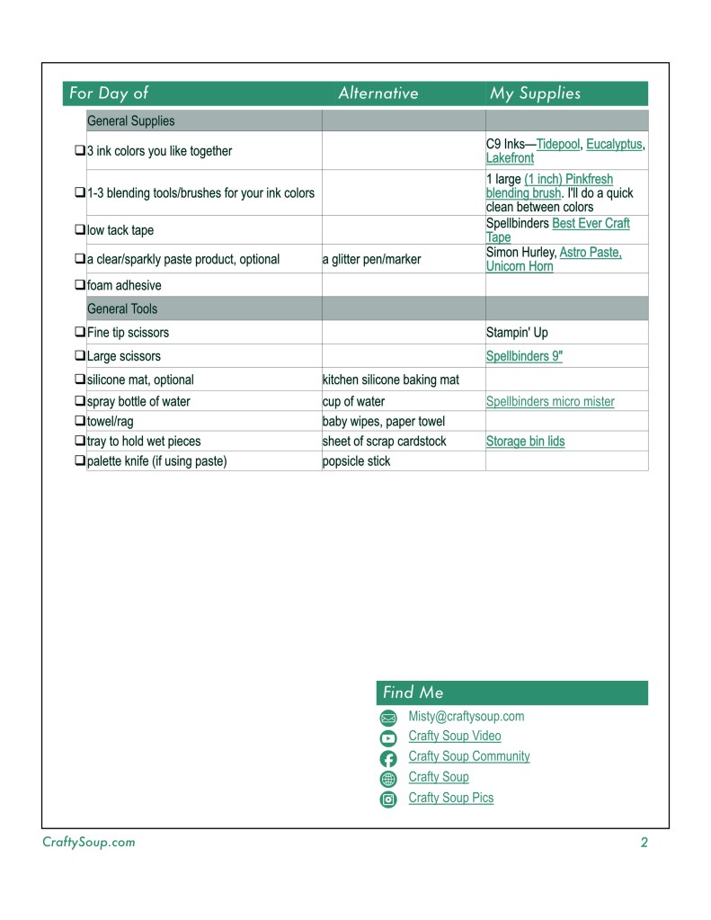 If you want to craft along with me, here is a preview of the preparation list. Click this link to download the instructions. A zip file will dowload. The folder includes PDF and JPG files.