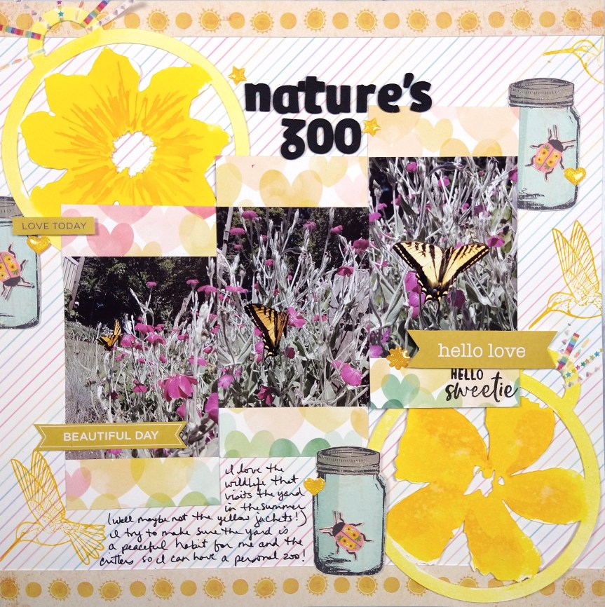 So I cut these files out of 140 lb watercolor papers at about five inches and then watercolored them with distress ink. I kept them monotone as I was using them for a layout challenge featuring the color yellow. And below is the final result.