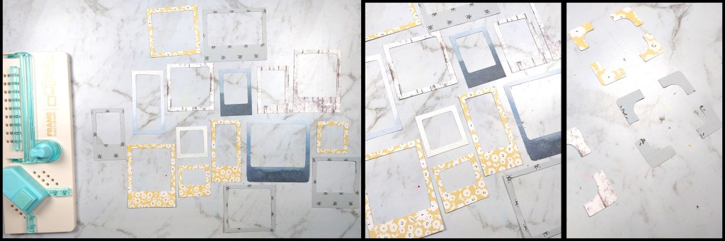 Here you can see the whole kit plus two close-ups. Notice all the frames? And how about those three little tassels? I’m going to recreate those and it is easy. Check out the whole process on YouTube. That is the best way to see everything, including how to use the Frame Punch Board to create frames. For photo tutorial on the tassels, keep reading.