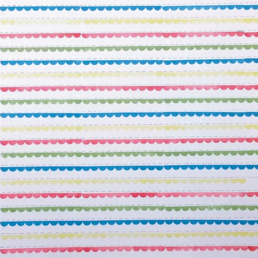Here are just the pattern papers. The ninth paper from the left is the one I’m looking at. It is the multicolor scallop & dashed lines stripe print.