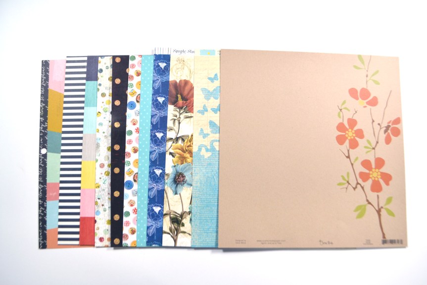 I knew from all this I wanted to incorporate striped pattern papers, buttons, and film strips. So lets look at the papers first. I was excited to incorporate old Basic Grey and Scenic Route papers along side brand new Simple Stories and Heidi Swapp. That is the joy of building your own kit!