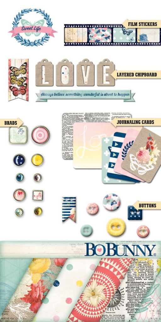 This month’s inspiration was chosen by team member Kate and the kit comes from Scrapbook Doodle from back in 2015. The kit focuses on Bo Bunny’s Sweet Life collection. Along with our host Kate, we have guest designer Dawn playing along with this kit. So be sure to give them big thanks for taking care of us with their inspiration.