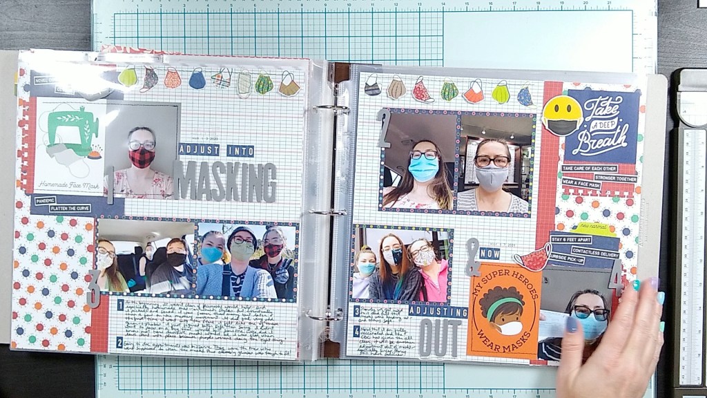 I do have a few independent 12×12 pages in there already. In fact I have this t-page spread about when the mask mandates ended in 2021.