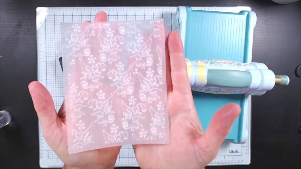 Don’t forget that vellum can be tricky to attach since you can see the glue right through it! If you need ideas on how to overcome that, I’ve got you covered there too! This post shows off vellum attachment ideas. Of course you can take the short cut right to the source video.