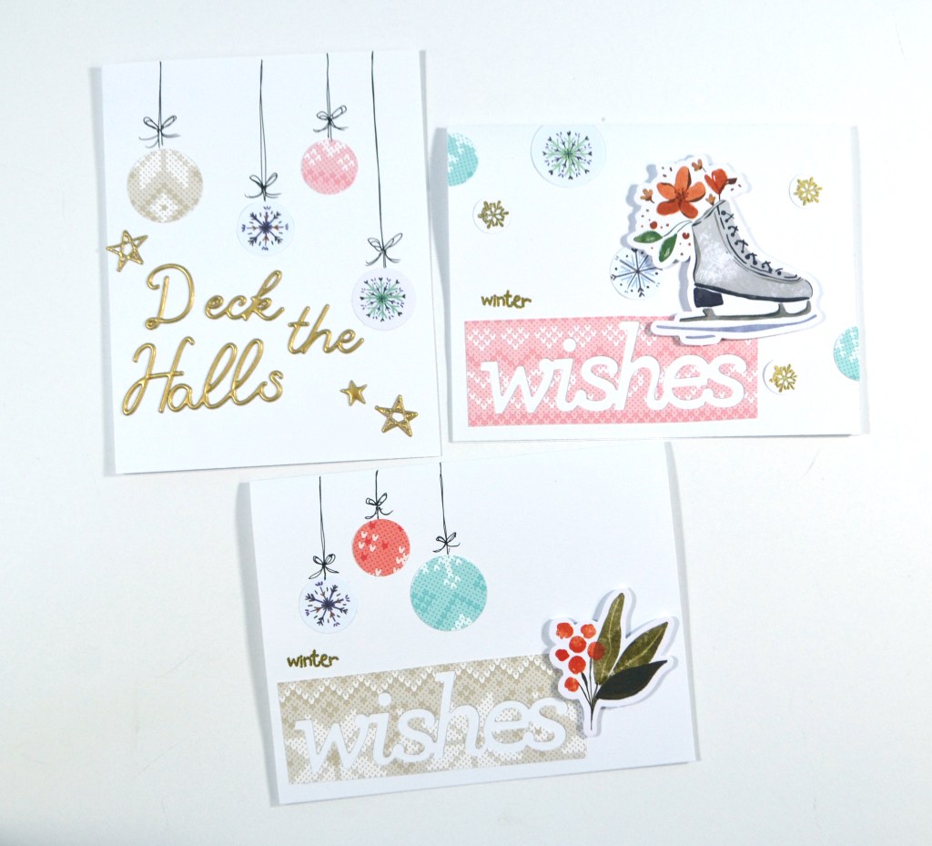 I wouldn’t want to leave you wondering just what to do with these supplies. So I almost always make a project as soon as my box arrives. That way I am sure to use it instead of just showing it off. This time around I made batches of Christmas cards. My card making tends to be simple and repeatable. This batch went together quickly