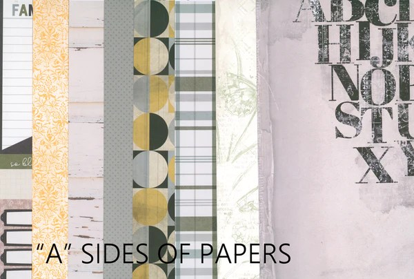 That circular geometric paper caught my attention instantly. Then upon closer inspection I noticed greens, yellows and a bit of blue along with plaid and woodgrain. So that is where I went with my kits. Oh, that is not a typo. I did say kits, plural. With May being a Layout A Day month, aka LOAD, I will be telling a variety of stories so I wanted to break my kit up into page kit themes all while keeping the inspiration in mind.