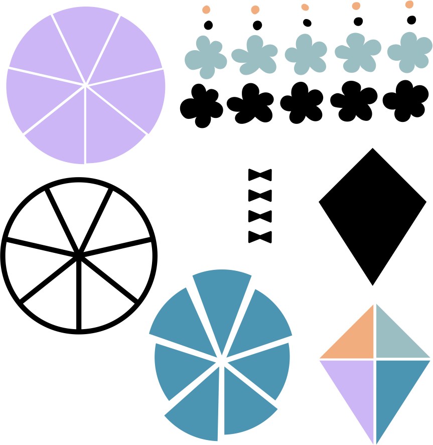 - Embellishments come in fussy-cut and electronic machine-ready files.