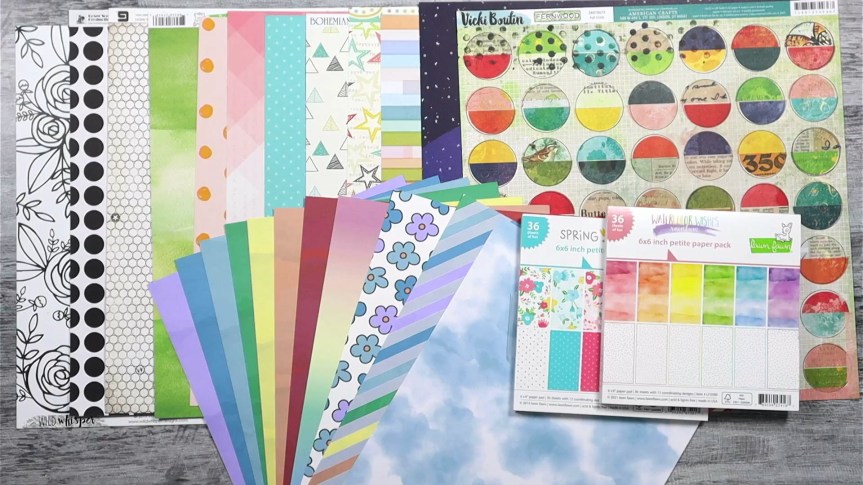 So these are the papers I came up with. The 8.5×11 sheets are from my collection. I didn’t include everything, but just the most relevant pieces. Notice I also have a couple of 6×6 paper pads. There are lots of techniques to incorporate these onto 12×12 layouts if that is your style (This YouTube playlist has many examples.) But… they always make great layers not matter what you do.