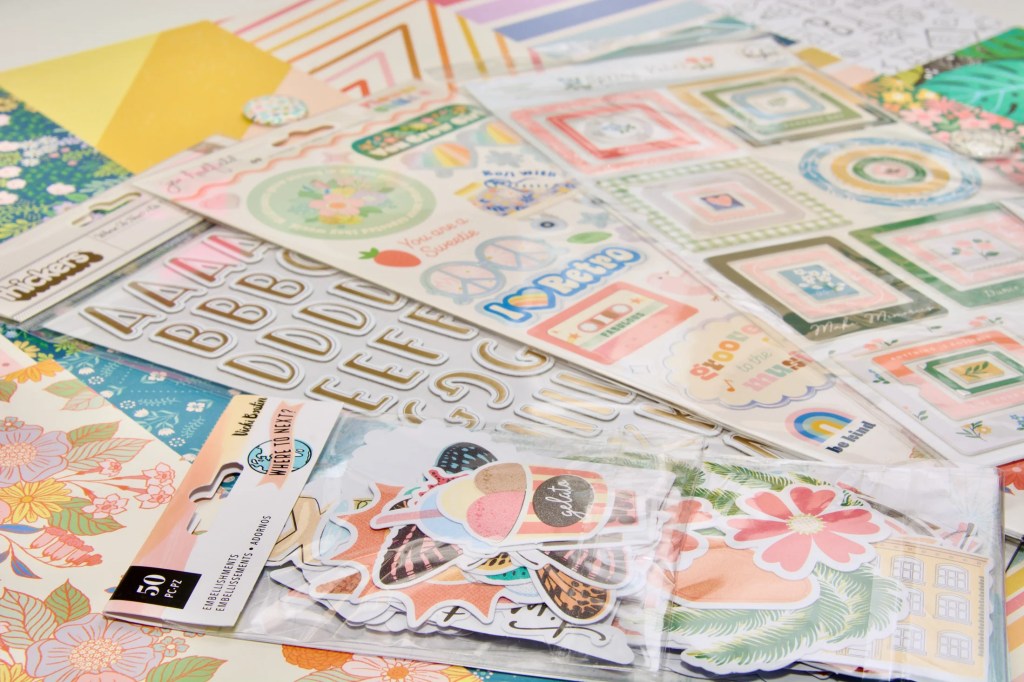 Now we can get to the pretty stuff. Our kit hostess for this month, Leslie, was excited to find a new kit offering on the market! It is a kit offering by Mercy Tiara. Mercy Tiara has a large online presence and audience and she is now offering kits! We are using her inaugural kit called Feeling Groovy as our inspiration for this month. If you want to see her whole reveal of this kit, you can check out her YouTube page.