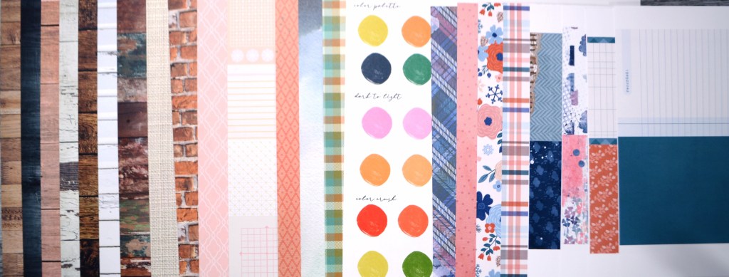 I did this in several ways. First, I chose a Traci Reed digital collection that features a cozy, homey vibe in a richer color palette, including oranges. It is called Hygge Season and has an add-on that includes specific winter icons. While I was browsing my TR supplies, I landed on the Tempest collection (a freebie on her site– follow instructions to get all three parts of the freebie). This one has a bit of color overlap with the inspo kit by having coraly-orange, tealy-green, navy, plus some pink. The takes on the colors in this collection definitely brighten things up.