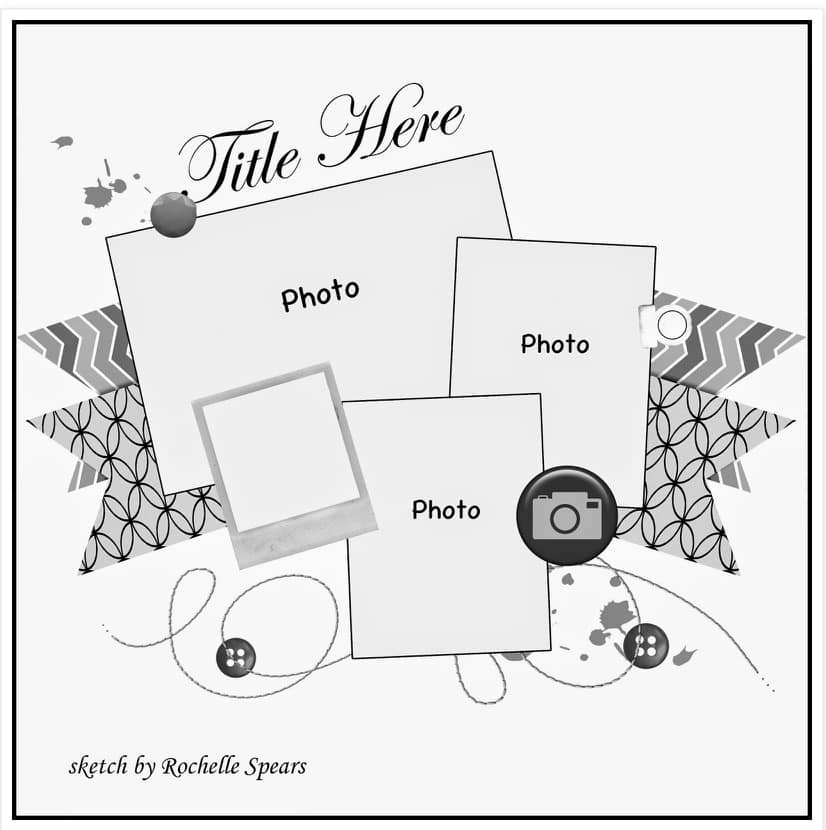 For reference here is our sketch from Rochelle Spears. I liked that it had three photos with an option for a fourth in that little polaroid frame. I went to my story binder, found a story with four photos and it was a story that would work well with my CKC kit colors and textures.