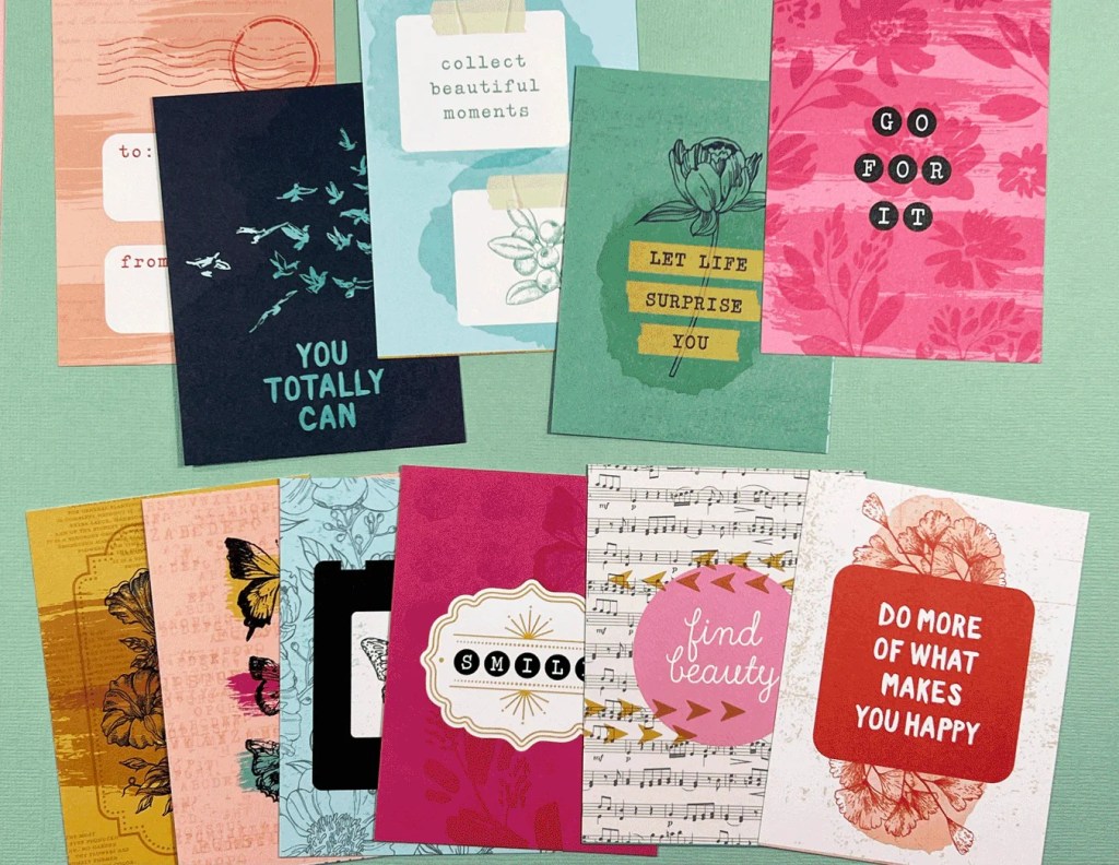 If you look closely, there is one paper in there that doesn’t really seem to fit with the original inspiration. Notice it? It is a Jen Hadfield piece from Flower Child. It features roller skates, scooters, and bikes. It steps out of the soft romantic vibe of Maggie Holmes and lands us in modern graphic vibe.