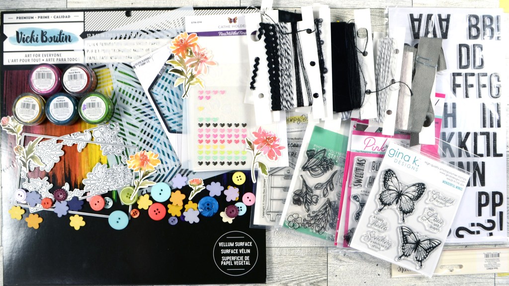 I’ve been using plenty of black and enough yellow lately so I was a tad hesitant. But when I looked closer at the floral pattern papers and the cardstock color palette I knew I had plenty to work with. Throw in the add-on mixed media pack and I was golden.