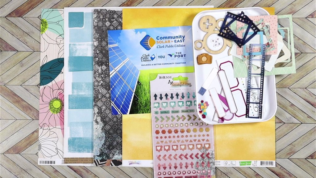 Now we can get to the paper. Brandi Jo chose our inspiration this month. As she has boys, you’ll notice a lean toward blues and greens. Yet there is a hint of florals if you need some of that in your life! Check it out.
