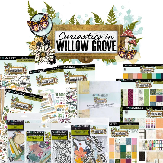 Team member Vikki is our hostess this time. She chose the Curiosities in Willow Grove* collection from Vicki Boutin and 49 & Market to inspire us. Before we dive into the details of this kit, let’s give a warm welcome to our guest designer this month, Melinda Barkman. You can check out her own Facebook group, Busy as a Bee Designs, to learn more.