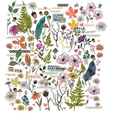 This is pretty classic Vicki Boutin. What drew me to this kit are the same things that draw me to all her work: nature, good color, pops of black, mixed media and word phrases that matter to everyday storytelling. Let’s see how that played out in my kit selections