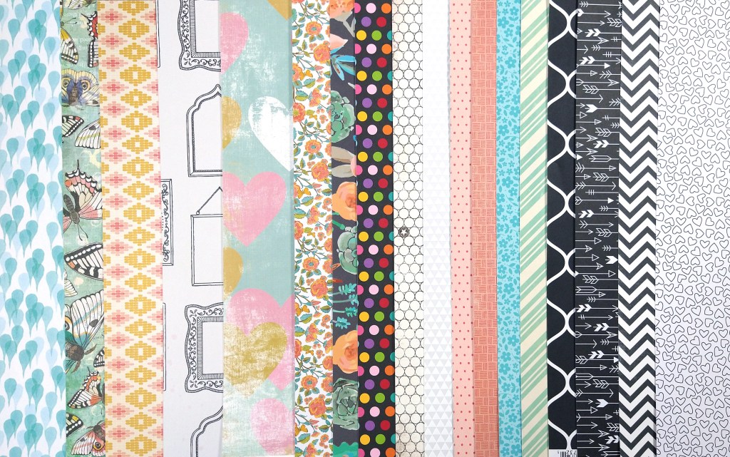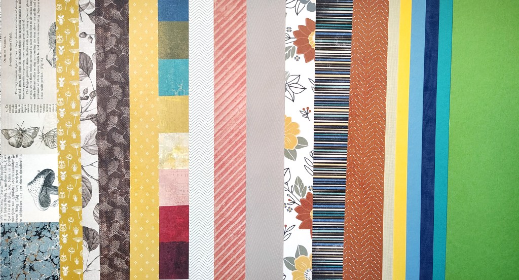 I am certainly ready for a fall vibe. The season finally changed where I live and I welcome it. (I know for our souther hemisphere friends, heading into spring must be a welcome change also!) While I’m ready for fall, I still need a broader color palette for my stories since my layouts often feature photos from other days of the year. So I will add in more color as I kit build. As always, I start with the papers.