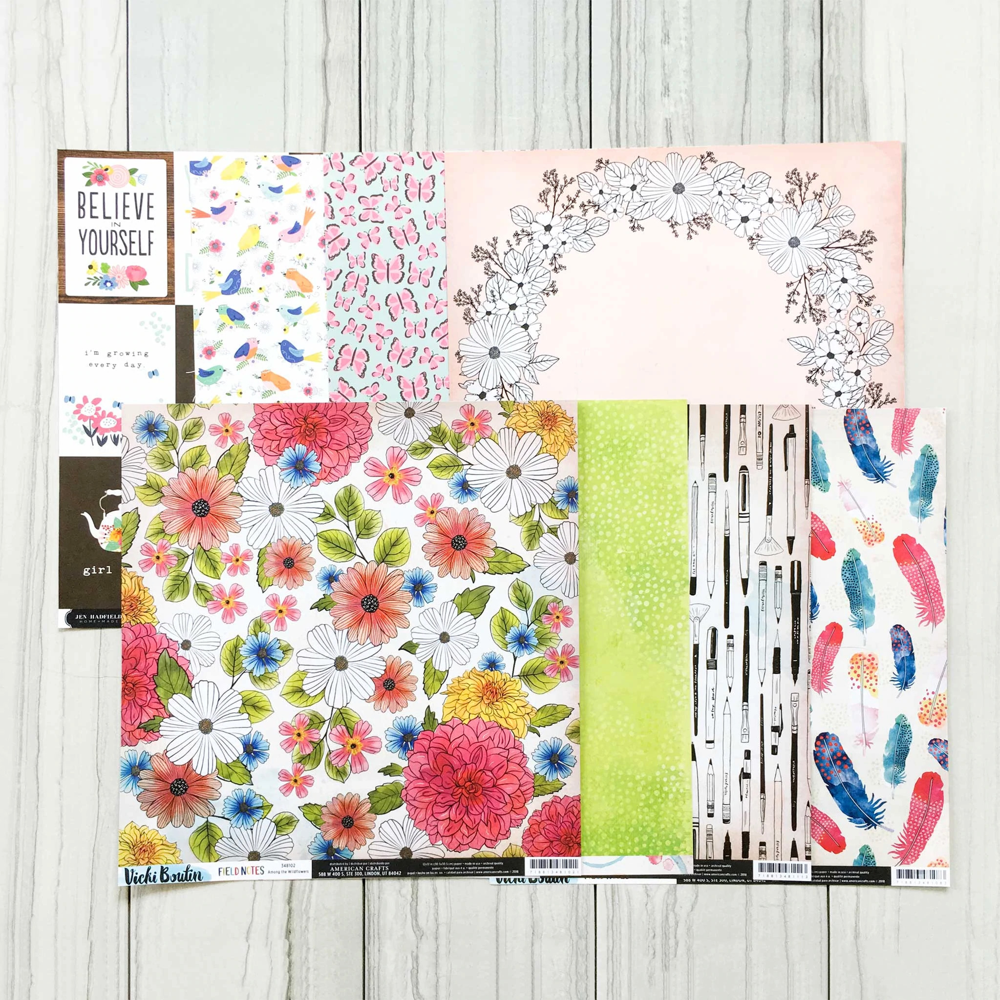 This kit is loaded with Jen Hadfield and Vicki Boutin products. As I am a fan of both designers I happen to own a chunk of their work. So, taking in all this inspiration, and the fact that I have some of these designer’s paper lines, here is the kit I came up with.