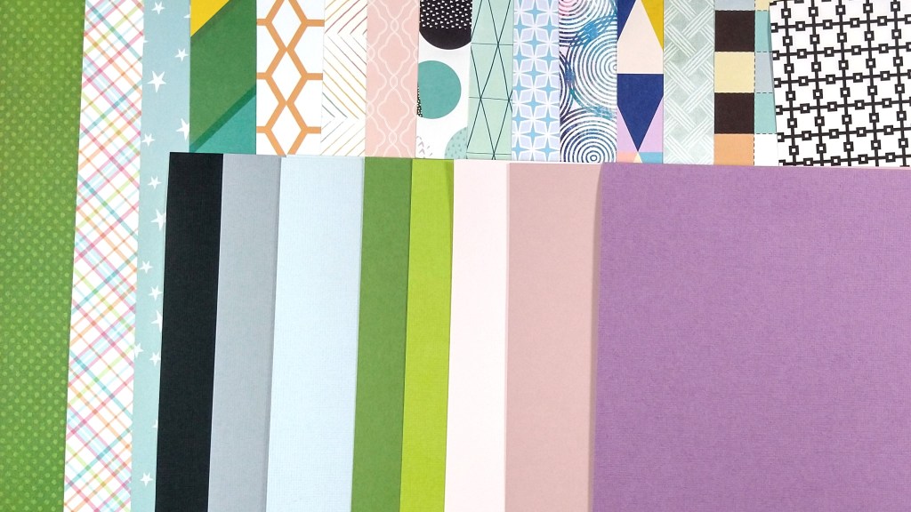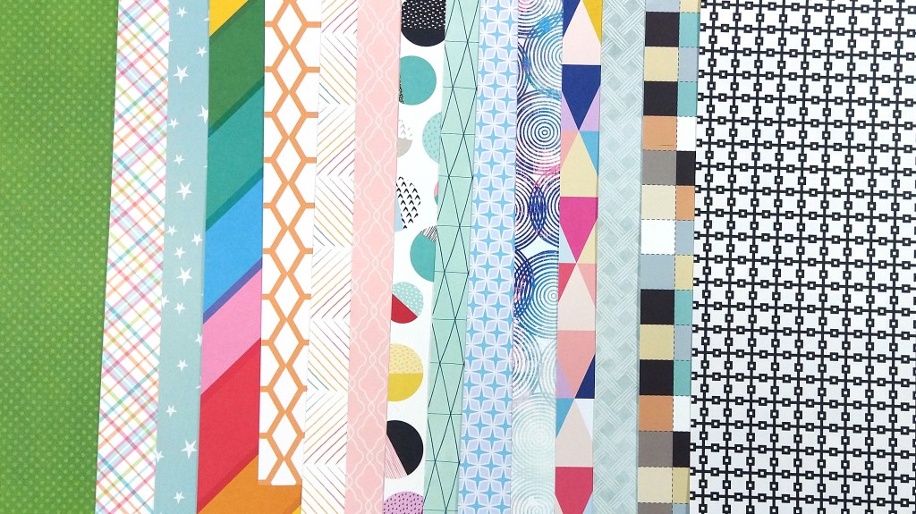 I had some good options to go with many of the inspo papers. I did swap in a more colorful stripe in place of a plaid paper. Then I just added one more bold color stripe from Vicki Boutin. Using those two items, I brought in more yellow, blues and green in cardstock. This will help me feel flexible in my story options.