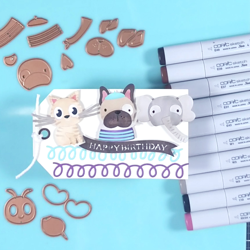 The final idea is one that I based my entire kit around this month: postage. I have been loving the trendy postage theme out in the crafty world lately. I have a few products that are clearly postage related. Yet as you can see from my makes, you can use just about anything to create these little gems. It helps to start with a great postage die. I used the Waffle Flower Postage Collage die. Waffle Flower makes many postage products; this one is sized for A2 cards. I threw in plenty of other supplies from my stash to create postage, from a nature theme to an Alice in Wonderland theme.