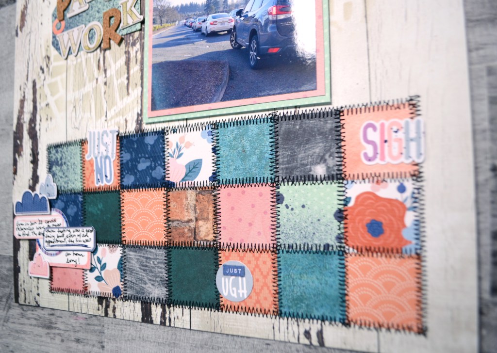 And we have reached the final challenge of the month. If you joined me in January, you’ll know that that the final challenge each month will now be a use your scraps challenge. I was inspired by another group challenge as well for this one. ScrapHappy’s current Unexpected Inspiration challenge is all about games and I was inspired by a game called Patchwork to use up scraps in a quilted fashion.
