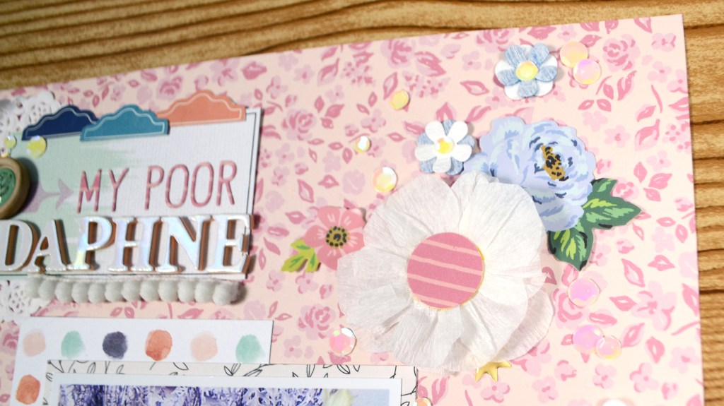 So with that cut file, I pulled a bunch of papers from my CKC kit and got to work making this layout. Oh. My. Heart. I just love this. I did tone it down with vellum. I do wish I had lighter weight vellum since it was toned down a tad bit too much. Even so, I’m just pleased. (Did I say that yet? LOL)