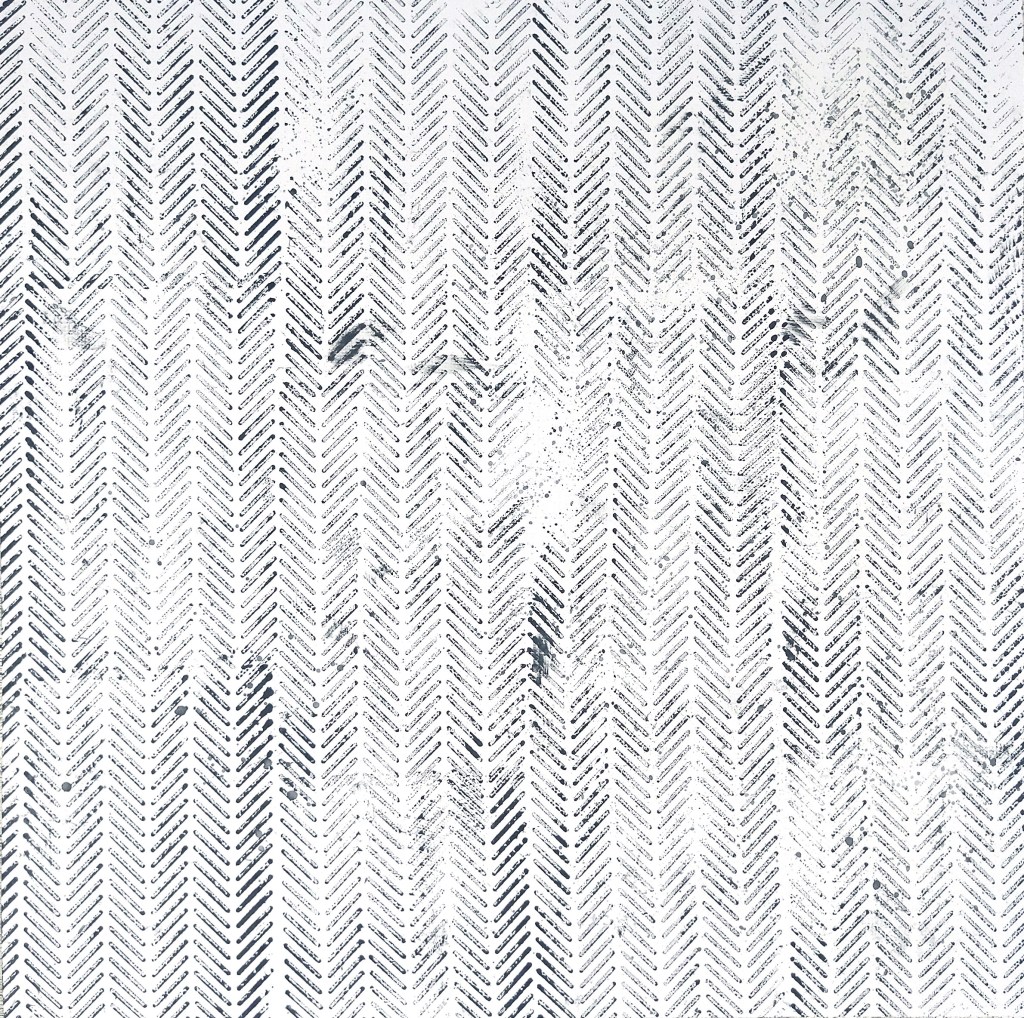 I wasn’t done yet. My next forgery was to make that far left pattern paper in the bottom row. Zooming in on that it is a slightly distress chevron print. I wanted to try a couple of things and ended up making a double sided piece of paper with a technique on each side.