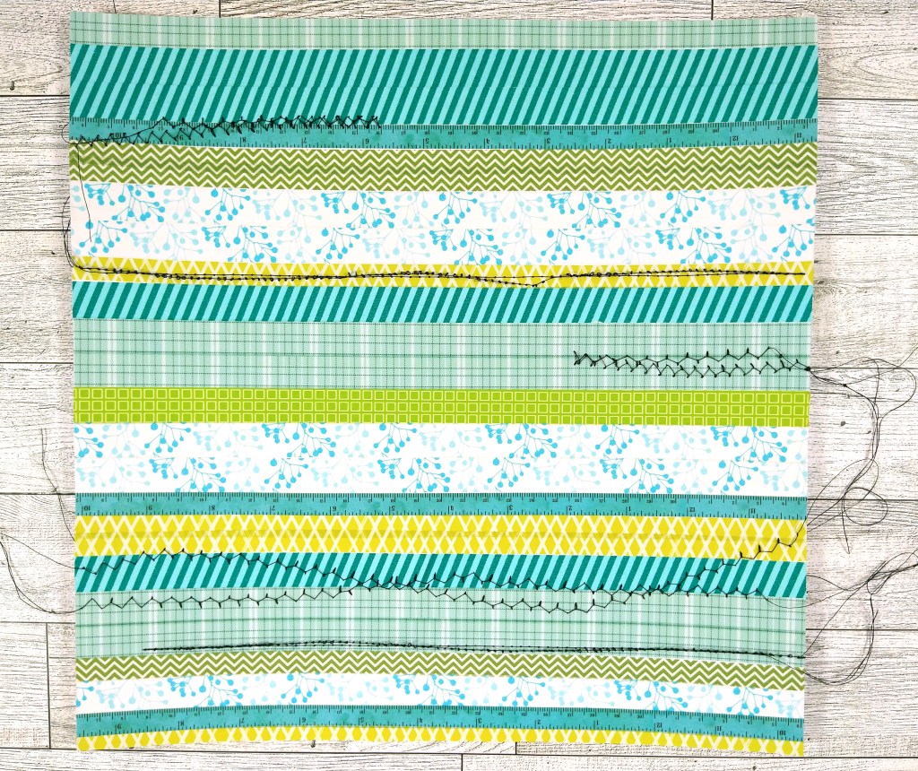 In the top row, the third from the left is that striped pattern paper. I was instantly drawn to that and knew that I wanted to recreate it from washi tape. That part went as expected. When I took that paper to my sewing machine a happy accident occurred. The tension on my machine was too loose and my stitching ended up being loosey goosey. There is no other way to describe it, LOL. I loved the texture for sure and will make this a purposeful technique in the future.